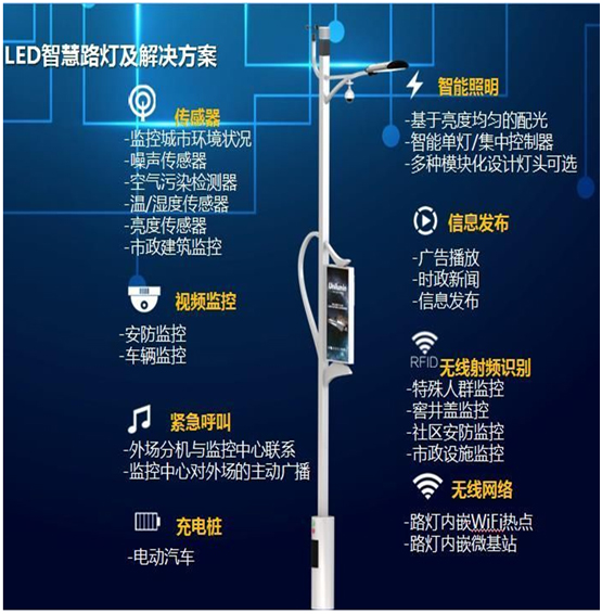 智慧照明是智慧城市的重要组成部分。它通过对路灯的远程集中控制与管理,具有根据车流量、时间、天气情况等条件设定方案自动调节亮度、远程照明控制、故障主动报警、灯具线缆防盗、远程抄表等功能;智慧路灯可以有效控制能源消耗,大幅节省电力资源,提升公共照明管理水平,降低维护和管理成本并利用计算等信息处理技术对海量感知信息进行处理和分析,对包括民生、环境、公共安全等在内的各种需求做出智能化响应和智能化决策支持,使得城市道路照明达到“智慧”状态。